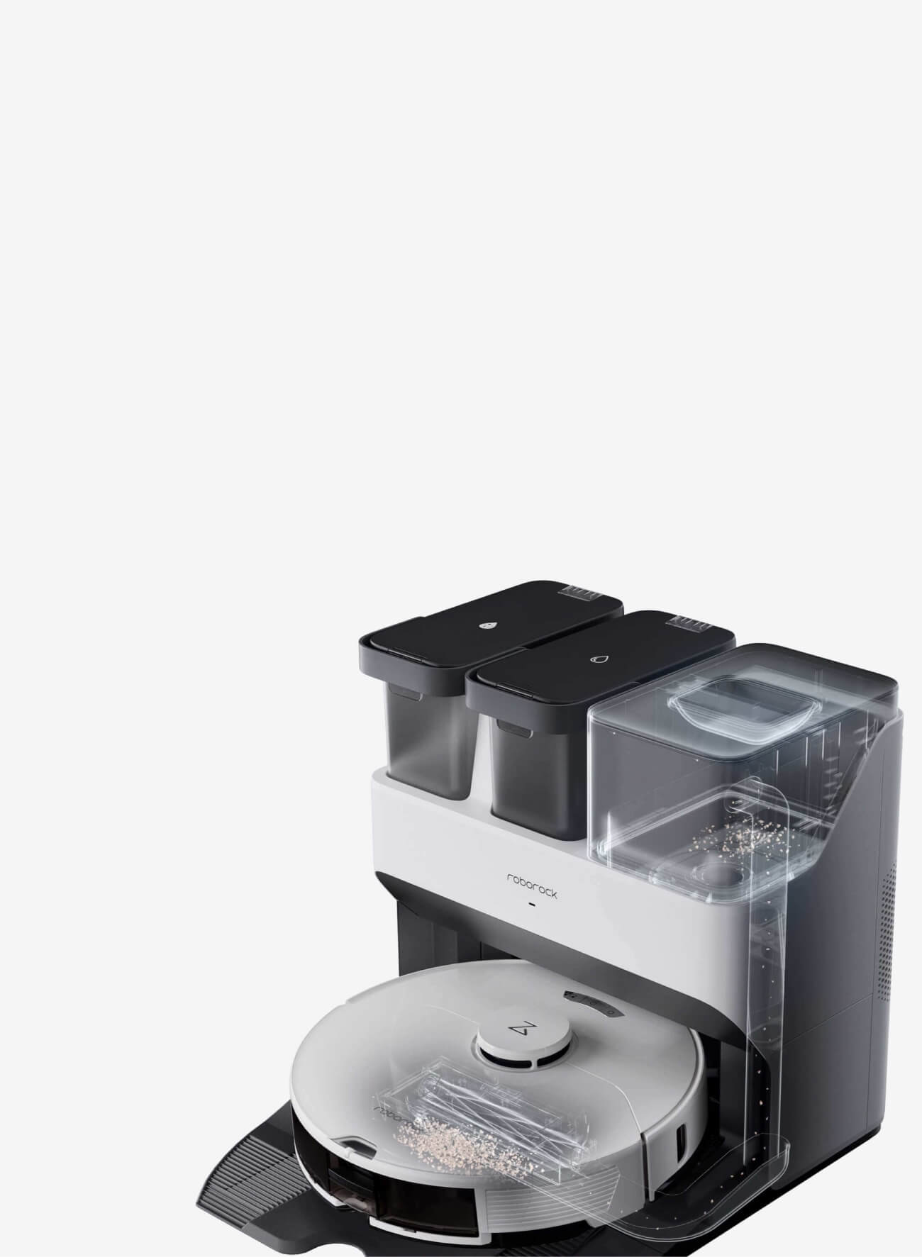 2. D’après des tests internes réalisés sur sols durs avec un réservoir d’eau propre plein dans la station de vidage, lavage et remplissage en utilisant le mode par défaut. Les résultats réels peuvent varier selon les caractéristiques des pièces.