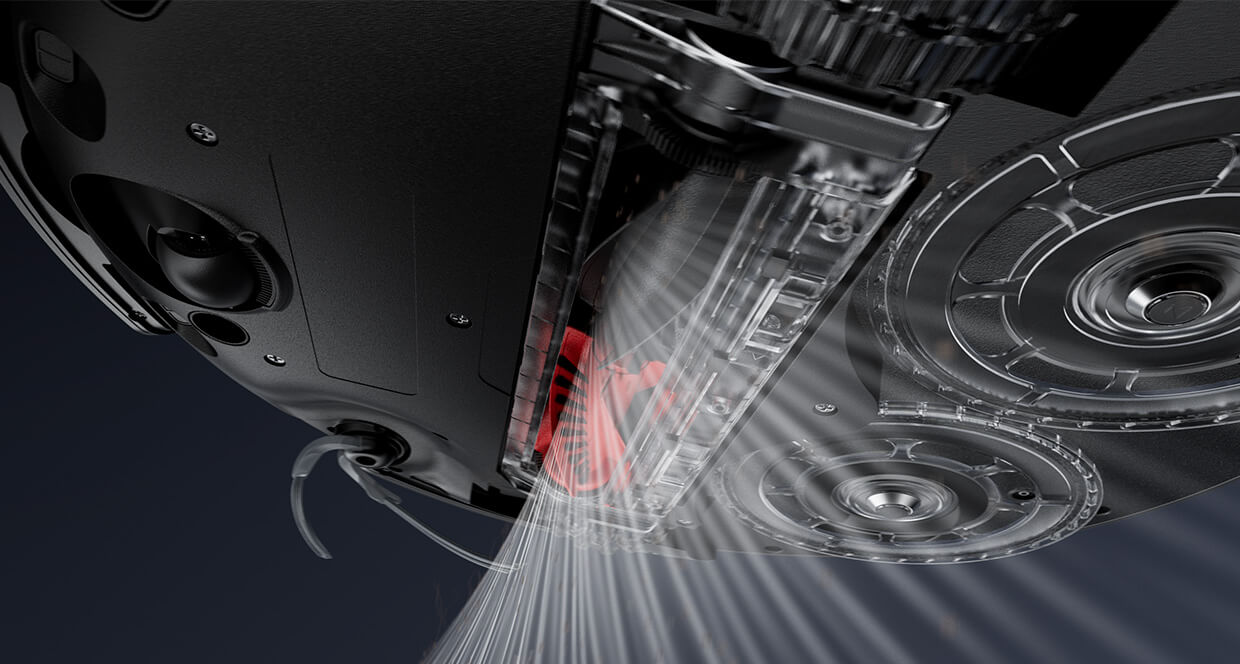 Elle prévient les enchevêtrements et empêche les blocages causés par les poils grâce à ses deux rouleaux parallèles, combinant poils courts et lamelles en spirales. Ces rouleaux dirigent efficacement les poils et cheveux vers l’entrée centrale du bac à poussière, assurant ainsi des sols impeccables.