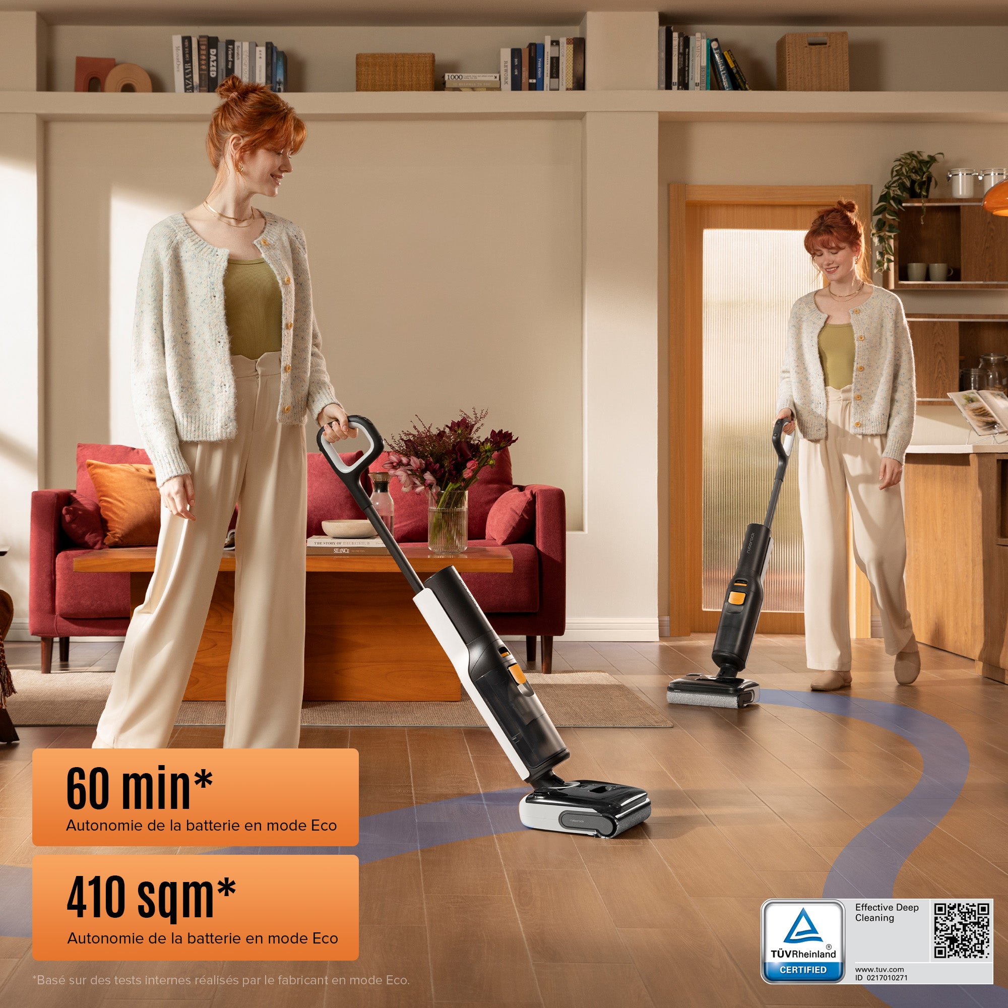 •Grattoir double : grattoir flottant à pression constante + grattoir à peigne anti-enchevêtrement formant un système anti-enchevêtrementCependant, les appareils présentent des différences en termes d'autonomie de la batterie, de facilité d'utilisation, de contrôle à l'aide du WiFi, de détection de la saleté, de distribution automatique de la solution de nettoyage, de la fonctionnalité d'aspiration uniquement et de durée de séchage. Voici un aperçu des modèles qui pourraient vous convenir le mieux :