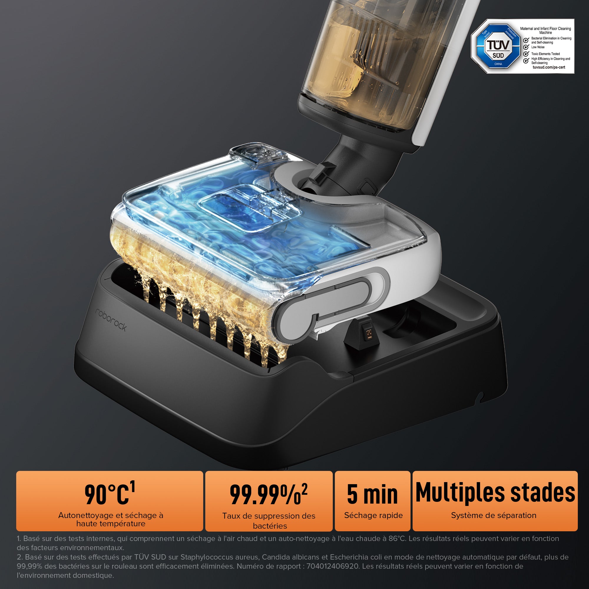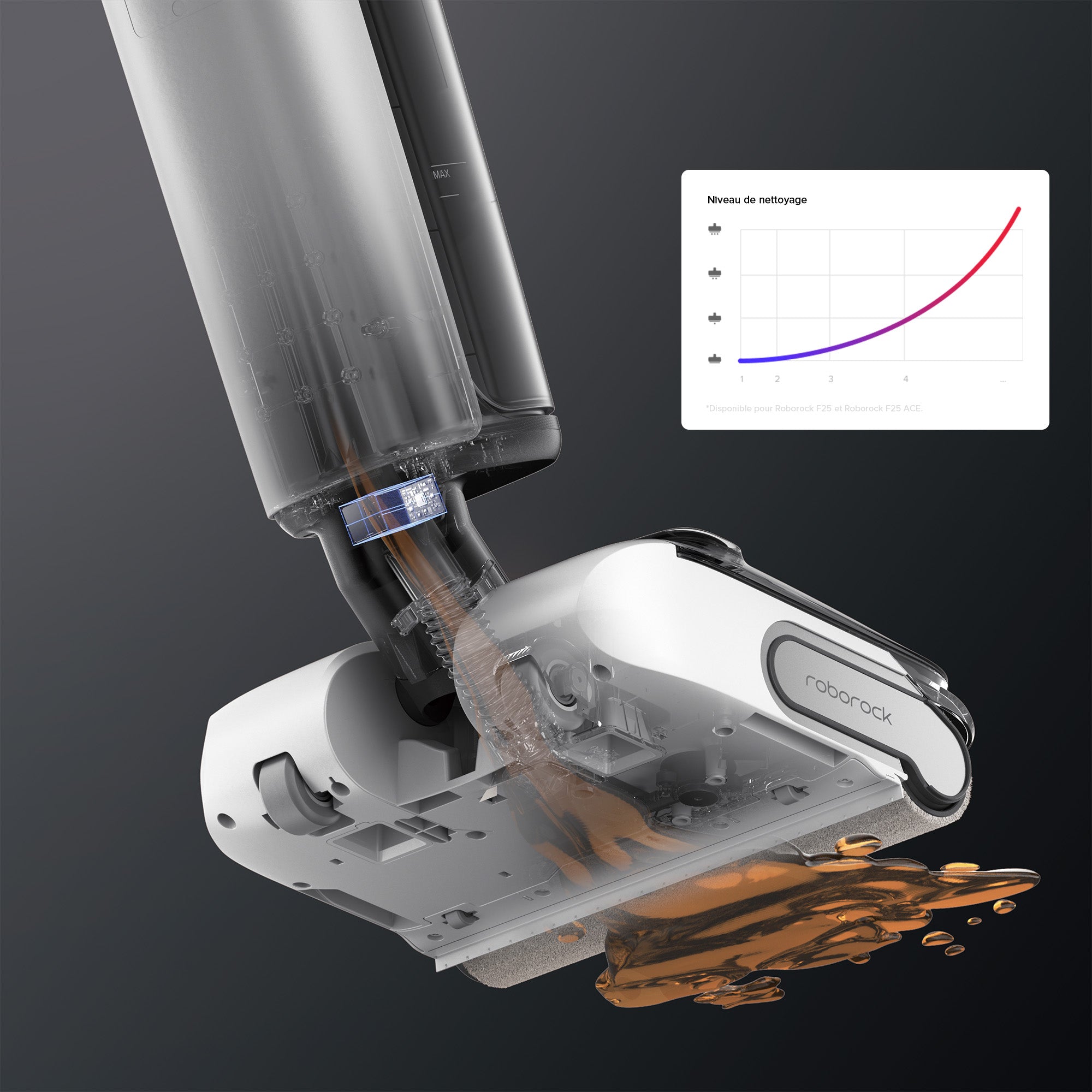 •Si vous recherchez une expérience high-tech haut de gamme, nous vous recommandons le F25 ACE et le F25 ACE Combo, qui offrent des fonctionnalités de pointe comme la détection intelligente de la saleté et un séchage plus rapide.De plus, les appareils de la gamme Combo (comprenant le F25 Combo et le F25 ACE Combo) peuvent également servir d'aspirateurs à main, ce qui les rend adaptés au nettoyage des tapis.Pour plus de détails sur l'ensemble des fonctionnalités disponibles, visitez notre site Web officiel : https://fr.roborock.com/pages/wet-dry-vacuum-compare