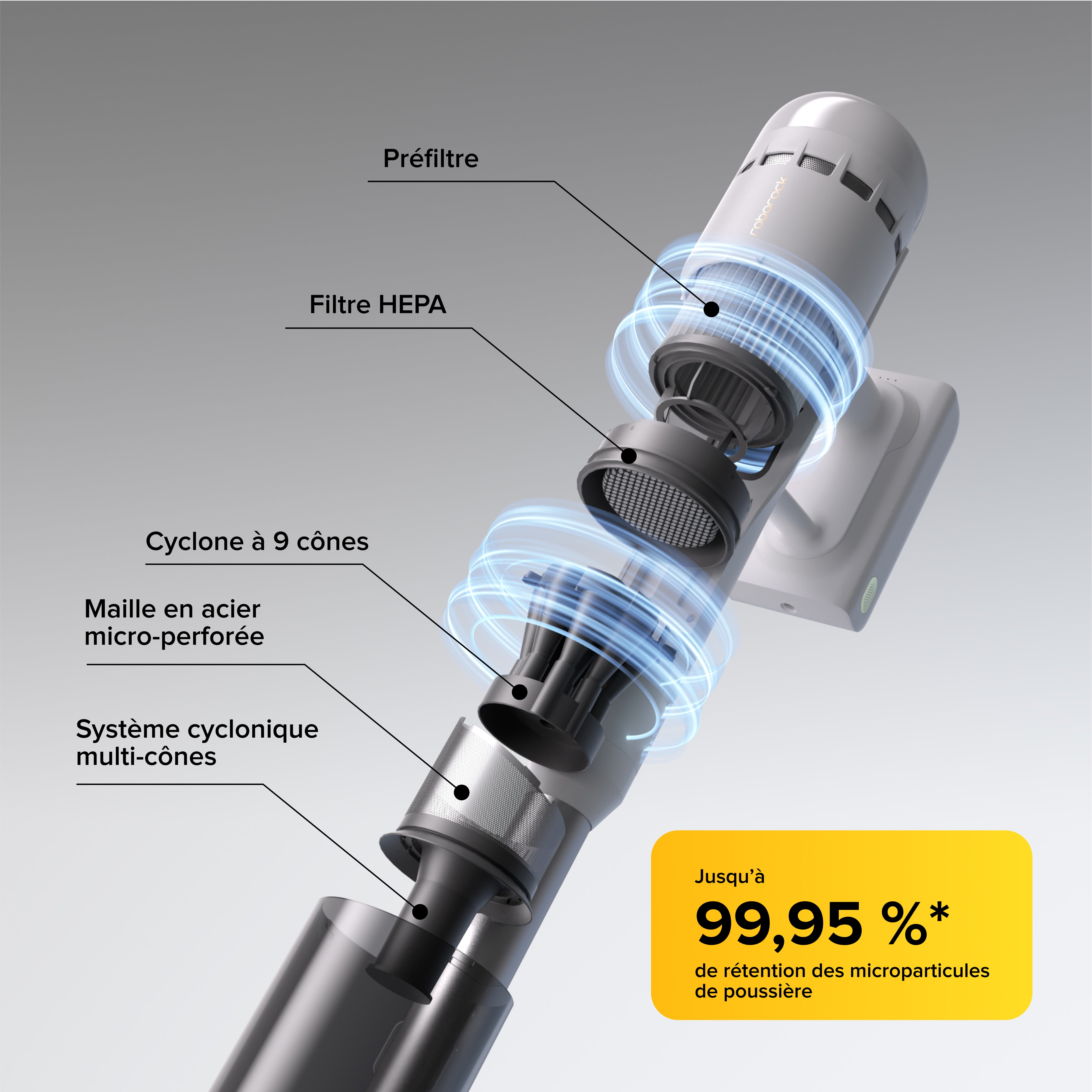 • Filtration à 5 étapes avec puissance cyclonique